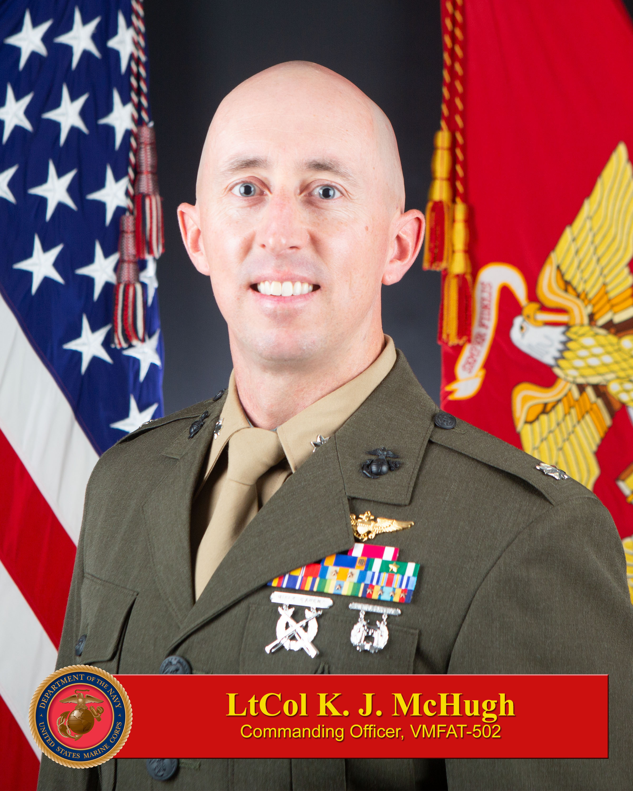 In February 2018, LtCol McHugh reported to VMFAT-501 in Beaufort, South Carolina and completed the F-35B conversion syllabus in November. He reported to VMFA-121 aboard MCAS Iwakuni, Japan in January 2019.